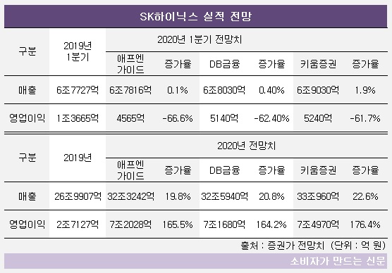 한편 SK하이닉스는 올 1분기 코로나19로 인한 침체에도 전년과 비슷한 수준의 매출을 기록할 것으로 전망된다.