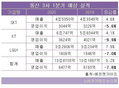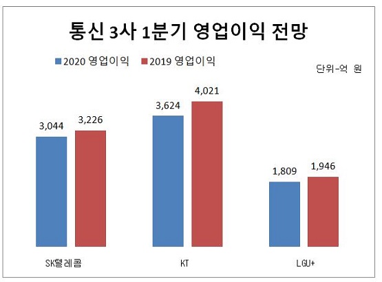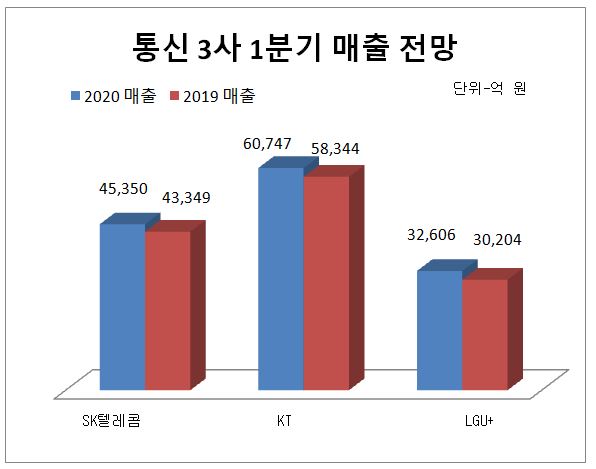 증권가에서는 코로나19로 대부분 산업이 타격을 입은 가운데 통신사들의 1분기 실적은 비교적 ‘선방’이라는 전망치를 내놓았다.