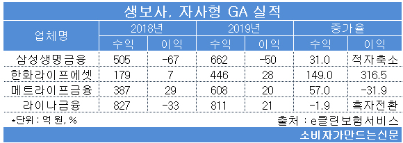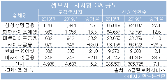 설계사는 줄었지만 자사형 GA의 전체 신계약건수는 30만5728건으로 전년보다 7.1% 증가했다.