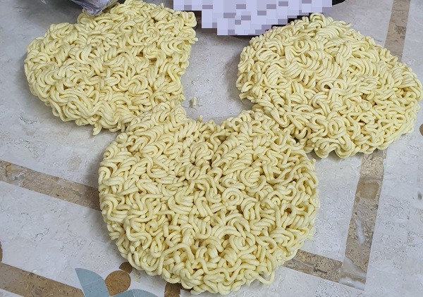 온라인몰에서 5개씩 들어있는 라면 4봉지를 구매했다는 지 씨. 우연히 만져보니 모양이 이상해 포장을 열자 파이고 부서진 건 둘째치더라도 면 모양이 동그랗고 네모낳고 모두 달랐다고.