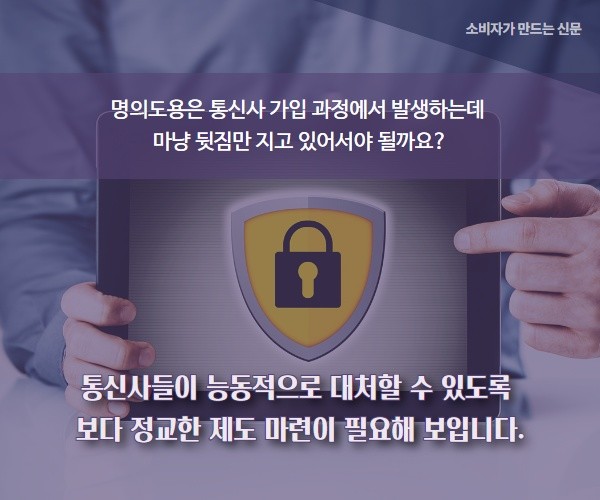 #7. 명의도용은 통신사 가입 과정에서 발생하는데 마냥 뒷짐만 지고 있어서야 될까요? 통신사들이 능동적으로 대처할 수 있도록 보다 정교한 제도 마련이 필요해 보입니다.