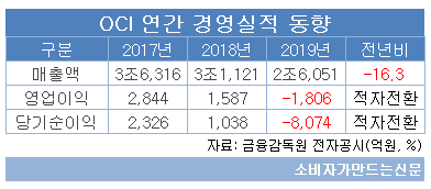 OCI가 강도높은 구조조정을 진행하게 된 이유는 급격한 실적 악화 때문이다.