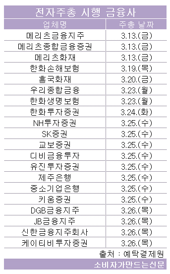 한국예탁결제원에 따르면 올해 정기주총에 전자투표시스템을 도입한 곳은 신한금융지주를 비롯해 20개사였다.