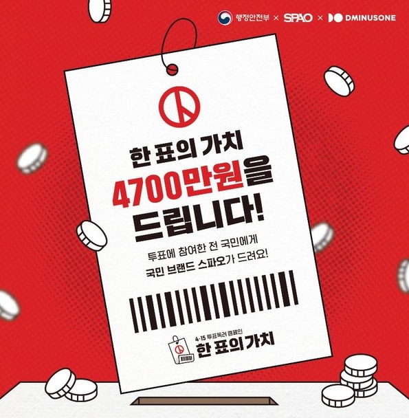 캠페인 주제는 ‘한 표의 가치’다. 투표의 가치를 금액으로 환산한 가격표를 스파오의 의류제품에 가격택으로 달아 고객들이 유권자로서 자신의 한 표의 가치를 체감하고 신중한 투표를 독려하는 내용이다.