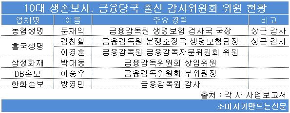 다만 삼성화재와 DB손해보험, 농협생명 등 일부 보험사에서는 여전히 금융당국 경력자를 감사위원으로 두고 있다.