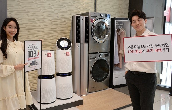 환급 대상 스탠드형 투인원(2in1) 휘센 에어컨을 구입하는 고객은 최대 45만 원의 추가 캐시백을 받는다. 에너지 효율이 상대적으로 낮은 정속형 에어컨을 10년 이상 사용한 고객이 2020년형 휘센 씽큐 에어컨을 구매하면 LG전자 홈페이지 이벤트를 통해 최대 10만 원 상당의 모바일 상품권도 받을 수 있다.