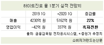 이에 따라 1분기 흑자전환도 가능할 것으로 보인다. 삼성증권은 하이트진로의 올 1분기 매출 5162억 원, 영업이익 337억 원을 낸 것으로 분석했다. 전년 동기 대비 매출은 22% 늘어나고 영업이익은 흑자전환 했다.