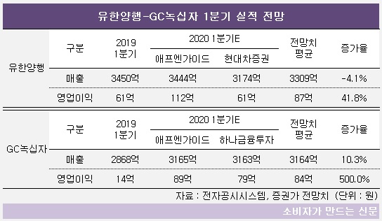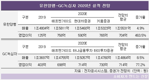 올 1분기의 경우 양사의 매출 전망은 반대양상을 보인다. 유한양행은 코로나19 영향으로 1분기 매출이 악화될 전망이고, GC녹십자는 계절적 특수를 누린 수두백신으로 인해 매출이 10%가량 증가할 것으로 보인다.