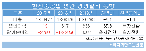 한진중공업은 지난해 매출 1조6288억 원, 영업이익 838억 원을 기록했다. 매출은 전년과 비슷하고 영업이익은 35% 증가했다. 특히 당기순이익은 3062억 원으로 전년(-1조2836억 원) 적자에서 흑자전환에 성공했다. 부실 뇌관이었던 수비크조선소와의 지분 관계도 모두 끊어냈다.