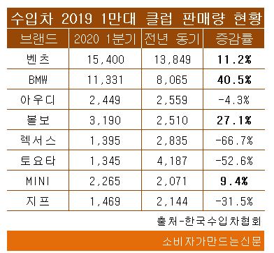 다만 업체별 쏠림 현상이 두드러진다. 지난해 판매량 1만 대를 넘긴 수입차 브랜드 메르세데스-벤츠, BMW, 아우디, 볼보, 렉서스, 토요타, 지프, MINI(이상 판매량 순) 등 8곳 중 전년 대비 판매량이 늘어난 곳은 벤츠, BMW, 볼보, MINI 4곳뿐이다.