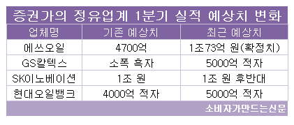이러한 예상치를 모두 합치면 정유4사 적자규모가 4조 원에 이르게 된다. 정유 4사의 지난해 합산 영업이익이 3조1202억 원이었는데 올해 1분기 만에 이를 모두 날리고 1조 원의 추가 손실을 입게 되는 셈이다.