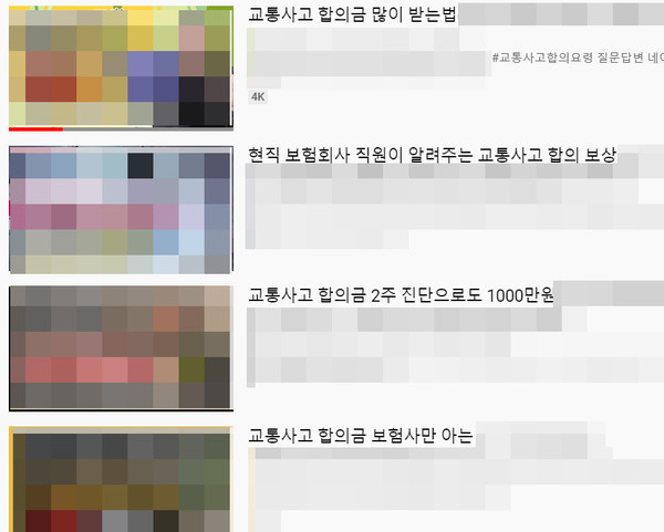 ‘코 성형수술 받고 실비 청구하는 법’, ‘교통사고 2주 진단으로 합의금 1000만원 받는 법’, ‘보험금 조사 나왔을 때 대처법’ 등의 자극적인 제목을 단 영상도 조회수가 30만 회를 넘어섰다.
