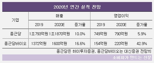 양사 모두 매출이 10% 이상 늘어날 전망이다. 종근당바이오의 경우 영업이익이 40% 이상 늘어날 것으로 보인다.