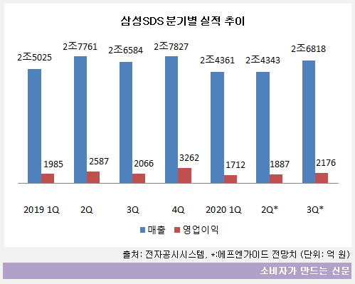 삼성SDS 측은 "코로나19로 인한 생산 및 물류이동 차질, 수요위축, IT투자 지연으로 전체 실적이 감소했다"고 말했다.