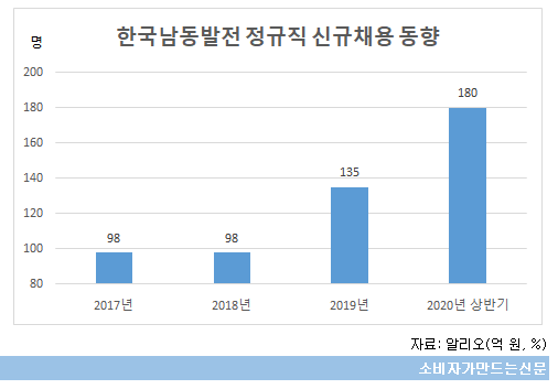 한국남동발전은 지난해 하반기에 35명을 추가 충원해 공채로 총 135명을 뽑았다. 올 상반기 채용으로만 작년 연간 채용인원을 50명이나 넘어선 것이다.