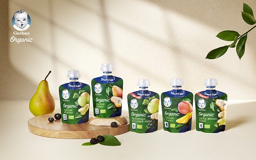 이번에 출시한 거버 오가닉 파우치는 EU로부터 유기농 인증을 받은 원재료의 맛과 영양을 담은 퓨레 타입의 이유식이다.