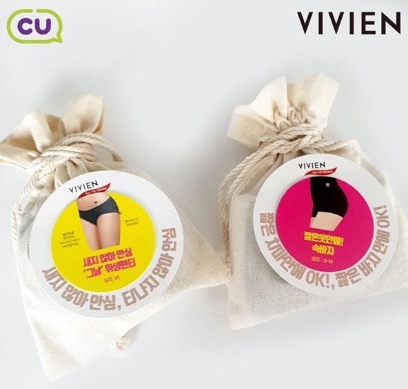 CU가 선보이는 비비안 여성 속옷은 속바지(S~M 사이즈‧검은색)와 여성들이 생리 기간에 주로 착용하는 위생팬티(90‧95 사이즈‧남색)로 가격은 각 9900원이다.