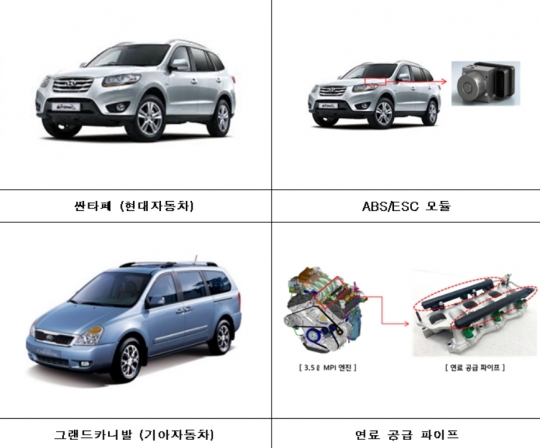 현대·기아자동에서 제작, 판매한 싼타페(CM) 등 3개 차종 29만4622대는 일부 노후 차량의 ABS/ESC 모듈 전원부에 오일 또는 수분 등의 이물질이 유입되어 내부합선으로 인한 화재 발생 가능성이 있어 시정조치(리콜)에 들어간다.