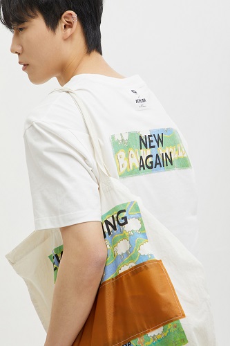 첫번째로 ‘에코백 티셔츠’로 업사이클링의 의미를 보다 쉽게 전달한다. 에코백 티셔츠는 다 사용한 에코백과 코오롱FnC의 재고 원단으로 만든 티셔츠가 세트로 구성됐다.