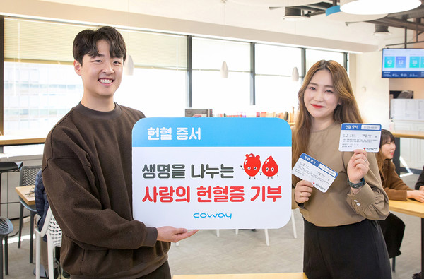코웨이 관계자는 “최근 코로나19로 인한 혈액 수급난으로 소아암 어린이들의 치료에 어려움이 많다고 들었다”며 “헌혈증 기부를 통해 따뜻한 나눔을 실천하게 돼 뜻 깊었다”고 말했다.