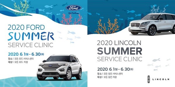 ‘포드 썸머 서비스 클리닉’ 캠페인은 야외 활동과 장거리 여행이 많아지는 여름 휴가시즌을 맞아 안전한 차량 운행을 위해 마련된 것으로, 포드·링컨 전 차종 고객을 대상으로 1일부터 29일까지 약 한 달간 진행된다.