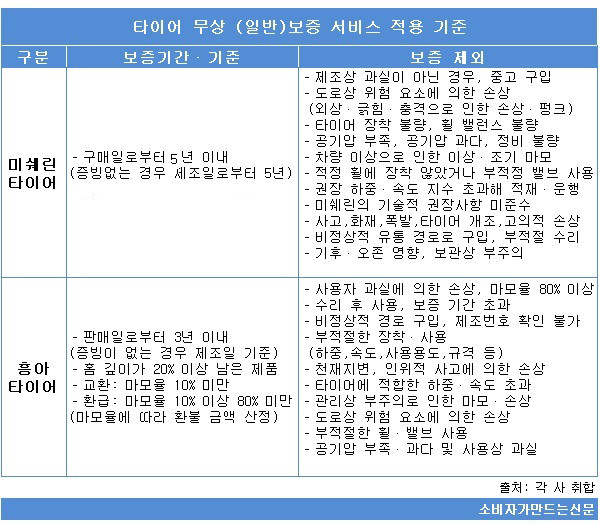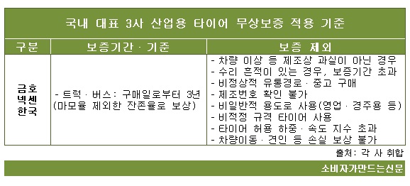 ◆ 트럭 등 산업용 타이어 보증기간 3년, 승용차의 절반 수준...사용자 관리 책임 물어 보증 제외