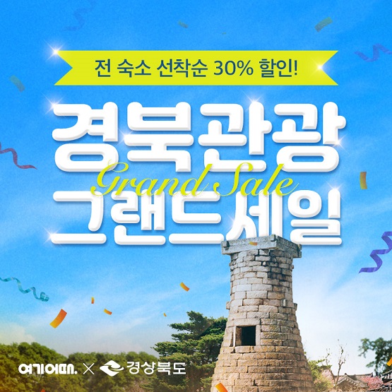 여기어때는 오는 15일부터 '제2차 경상북도 그랜드 세일'을 개최한다. 1차 행사에서 제공한 '15% 무제한 할인 쿠폰'에 '30% 숙소 할인 쿠폰'을 추가 지급하는 내용이 담겼다. 30% 숙소 할인 쿠폰은 매일 오후 1시에 선착순 100명에게 지급된다. 여기어때가 제공하는 특가와 쿠폰을 중복 적용하면 최대 79%의 할인율이 적용된다.