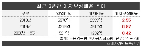 수익성이 악화되다 보니 부채상환이 제대로 이뤄지지 않으면서 재무건전성이 악화된 것이다.