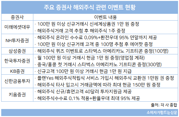 KB증권은 해외주식 타사 입고 고객을 대상으로 입고 금액에 따라 최대 현금 150만 원을 증정하고 다수 증권사들은 100만 원 이상 해외주식 거래시 1만 원을 상품권 또는 현금으로 증정하는 페이백 이벤트도 진행하고 있다.