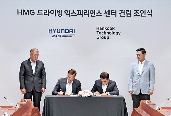한국테크놀로지그룹 조현식 부회장과 현대자동차그룹 정의선 수석부회장은 17일 서울 서초구 현대자동차그룹 양재사옥에서 태안기업도시에 건설 중인 한국타이어 태안 주행시험장 내에 현대자동차그룹 드라이빙 익스피리언스 센터를 건립하고 태안 주행시험장 시설을 이용해 현대자동차그룹 고객들에게 자동차를 이용한 다양한 체험을 제공할 수 있도록 한다는 내용의 협약 조인식을 진행했다.