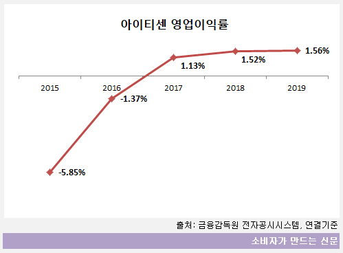 아이티센 측은 수익률이 낮은 이유에 대해 "이익률이 높지 않은 한국금거래소 부문 매출이 절반 이상을 차지하고 있기 때문"이라며 "1~2%대의 영업이익률을 유지하는 것도 업계에서는 높은 편에 속한다"고 설명했다.