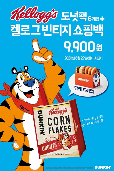 이번 프로모션은 던킨이 켈로그와 협업해 출시한 ‘켈로그 도넛’을 ‘켈로그 빈티지 쇼핑백’과 함께 9900원에 판매하는 행사다.