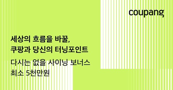 특히, 쿠팡은 이번 공개채용 프로그램에 한해 합격자들에게 최소 5000만 원의 입사 축하금 성격의 사이닝 보너스를 지급한다.