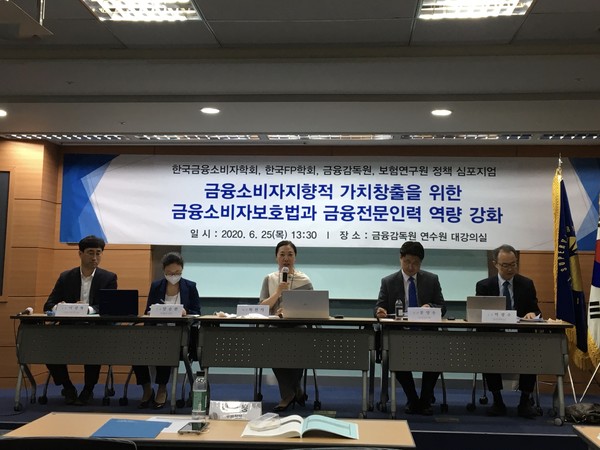25일 한국금융소비자학회, 한국FP학회, 금융감독원, 보험연구원은 ‘금융소비자보호법과 금융 전문인력 역량강화’를 주제로 정책 심포지엄을 개최했다.
