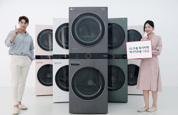 LG 트롬 워시타워는 세탁기와 건조기를 일체형으로 구현한 제품이다. 신제품은 하단의 세탁기뿐만 아니라 상단의 건조기도 표준코스 기준 에너지소비효율 1등급이다.