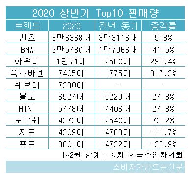 아우디와 폭스바겐은 지난해 같은 기간에 비해 판매량이 3~4배로 늘었고, 포르세와 BMW, 볼보, 미니 등도 두 자릿수 증가율을 기롯했다.