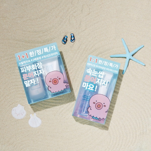 문어 컬렉션의 ‘L. 픽스-온 프라이머’는 코드글로컬러의 대표적인 베스트셀러로, 피부의 모공과 요철을 매끈하게 커버해 베이스 메이크업의 밀착력을 높여준다. 본품 대비 동량의 증정품도 함께 구성돼 가격 혜택까지 더했다.