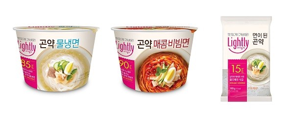 ‘곤약 물냉면’은 ‘면이 된 곤약’과 냉면 육수로 구성돼 있으며, ‘곤약 매콤비빔면’에는 ‘면이 된 곤약’과 매콤 비빔소스, 김참깨 후레이크 등이 동봉돼 있다.