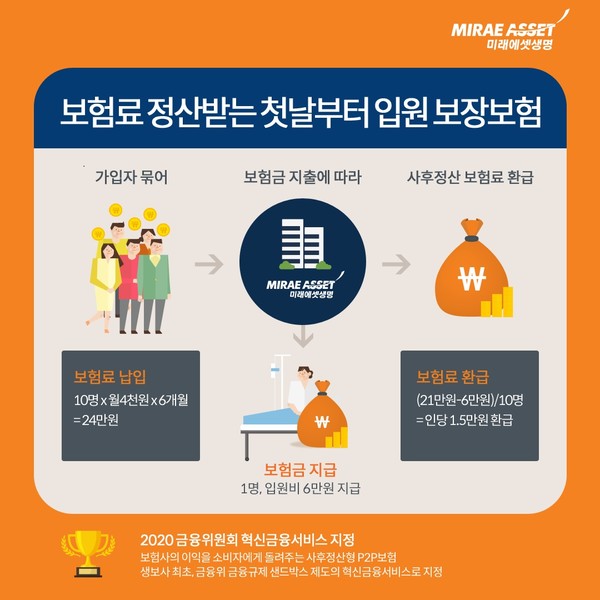 미래에셋생명은 지난 2월 사후정산형 건강보험 콘셉트를 금융위에 제안했고, 생보사 최초로 혁신금융서비스로 지정됐다.