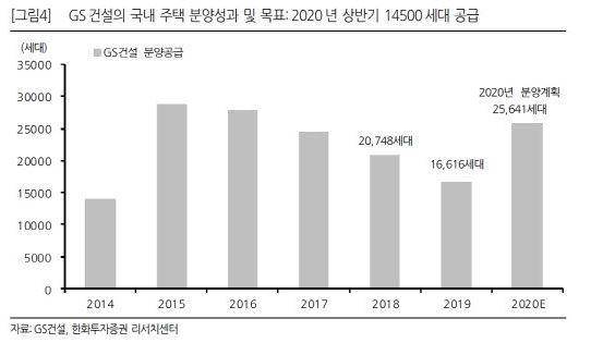 개포8단지(도급액 8600억 원), 과천 제이드자이(5800억 원) 등 대형 현장의 매출 본격화와 흑석 리버파크자이(4500억 원)를 포함한 일부 현장의 조기 착공, 연결 자회사 자이에스앤디의 매출 기여(2020년 예상 주택 매출 1008억 원) 증가 등으로 하반기 주택 부문 실적이 대폭 개선될 전망이다.