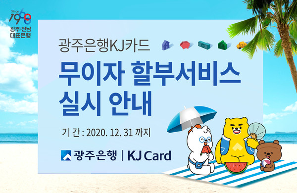 광주은행 김재중 카드사업부장은 “‘코로나19’로 어려운 지역경제 상황이지만 고객님들의 가정 경제에 보탬이 되고자 이번 무이자 할부 서비스 이벤트를 실시하게 됐다”며 “고객님의 현명한 소비에 도움이 될 수 있도록 다양한 금융 이벤트 및 상품 출시에 최선을 다하겠다”고 말했다.