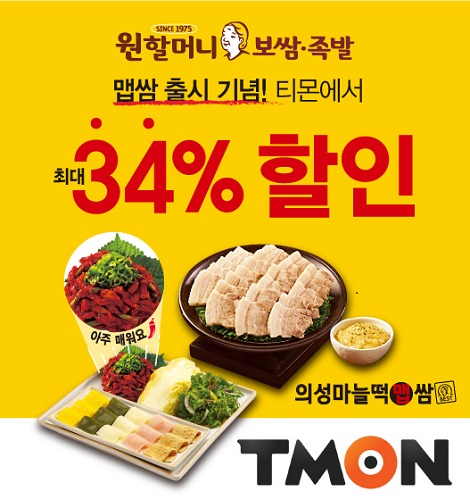 원할머니보쌈·족발, 티몬서 메뉴 3종 e쿠폰 최대 34% 할인