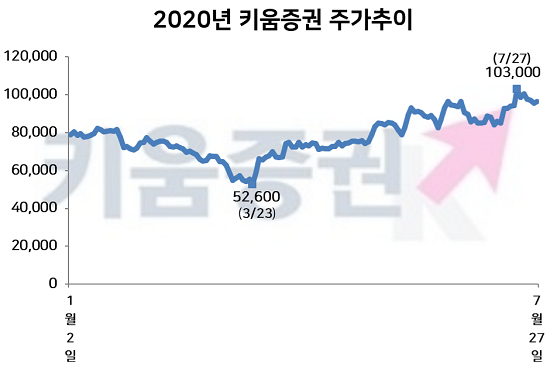 메리츠증권 리서치센터에 따르면 키움증권의 2분기 순이익은 전 분기 대비 1949.5% 증가한 1936억 원으로 예측되고 있다. 이는 전년 동기대비로도 248.6% 증가한 것으로 동학개미운동을 비롯한 국내·해외 주식거래 증가에 따른 최대 수혜를 본 것이 주가에 그대로 반영된 것으로 보고 있다.