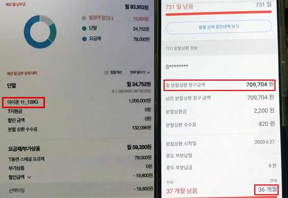 #사례3 대전 서구에 사는 이 모(남)씨도 기기 변경을 위해 지난 달 중순 방문한 LG유플러스 C대리점에서 유사한 일을 겪었다. 출고가 155만 원인 '아이폰11 프로맥스 64GB' 기기 변경과 월 7만8000원 요금제 가입을 요청한 이 씨. 그러나 계약서상 개통된 기기는 출고가 176만 원인 '아이폰11 프로맥스 256GB'였고 요금도 10만5000원 고가 요금제로 가입된 상태였다. 이 씨는 "민원을 제기하자 C대리점 측은 계약 전 충분히 설명했는데 뭐가 문제냐는 식이었다. 그러면서 슬그머니 7만8000원 요금제로 변경했더라. 내가 원했던 기종보다 20만 원 가량 더 비싼 기기를 계속 사용할 이유가 있느냐"고 도움을 요청했다.