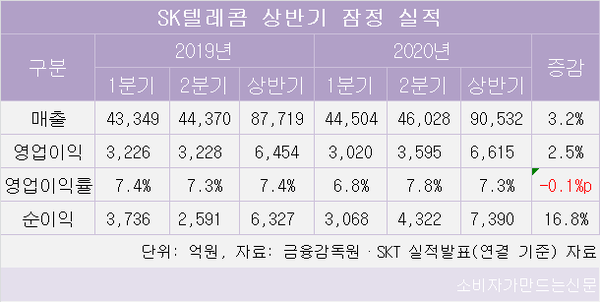 상반기 매출은 전년동기 대비 3.2% 증가했고 영업이익도 코로나19 등 불확실한 대외 환경에도 2.5% 증가했다. 순이익의 경우 SK하이닉스 지분법 이익 영향으로 16.8% 증가했다.