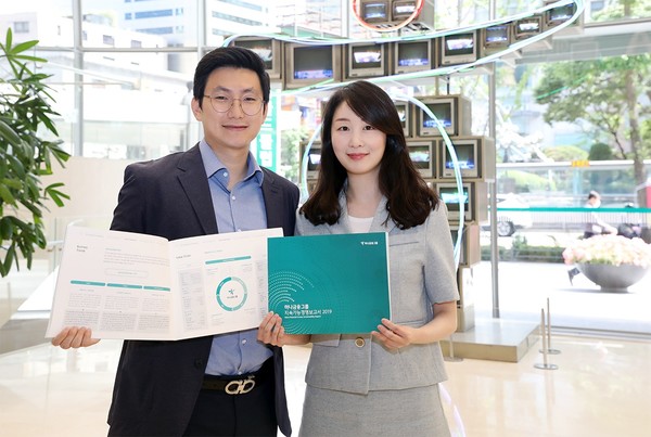 특히 기후변화 대응 등 글로벌 차원에서 논의되는 다양한 ESG이 슈에 적극 대응하기 위해 유엔 지속가능발전목표(UN SDGs)와 연계해 새롭게 수립한 그룹 5대 CSR(기업의 사회적 책임) 전략인 ▲포용적 금융 ▲미래세대 육성 ▲취약계층 지원 ▲메세나 확산 ▲환경 보존과 이에 따른 다양한 활동도 공개했다.