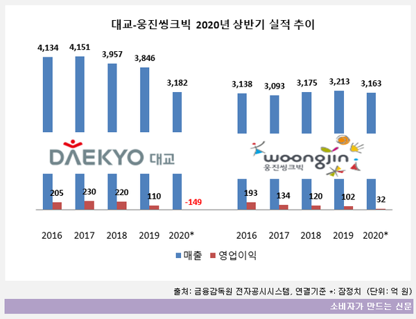 대교의 2016년 상반기 매출액은 4134억 원, 영업이익은 205억 원이었다. 같은 기간 웅진씽크빅의 매출은 3138억 원, 영업이익은 193억 원이었다.