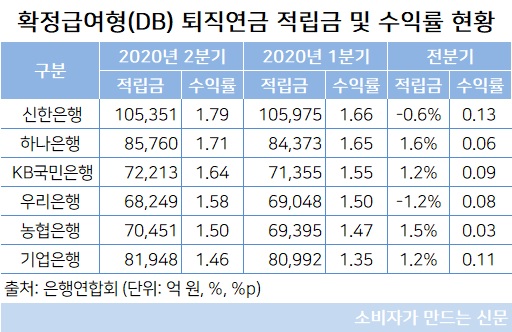 확정급여형(DB) 퇴직연금의 수익률은 4대 은행 모두 1% 중후반대로 소폭 상승했다.
