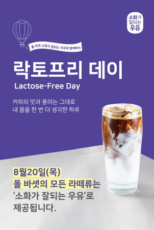 ‘락토프리 데이’는 그 동안 우유 옵션으로만 즐길 수 있었던 ‘소화가 잘되는 우유’를 우유가 들어가는 모든 커피 및 음료 메뉴에 적용하는 캠페인이다.