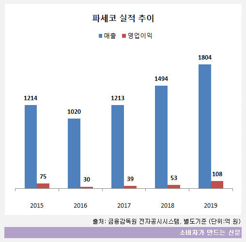 지난해 파세코 매출은 1804억 원, 영업이익은 108억 원을 달성했다. 반면 신일전자의 매출은 1459억 원, 영업이익은 16억 원으로 줄어들었다.